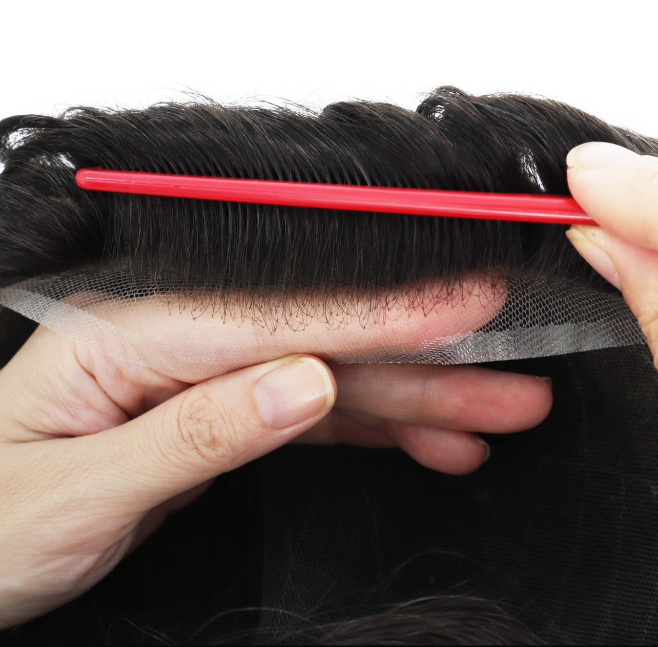 Die Basis ist mit der Spider-Web-Stitching-Technik sorgfältig vernäht, was zusätzliche Stabilität und Langlebigkeit garantiert. Der natürlich gebleichte Haaransatz sorgt für einen realistischen Übergang zur Kopfhaut und kann individuell zugeschnitten werden.